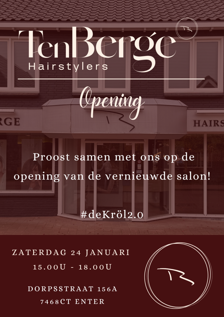 - 24 januari proosten we op de opening van de vernieuwde salon, samen met jou! Je bent welkom van 15.00-18.00 uur!
